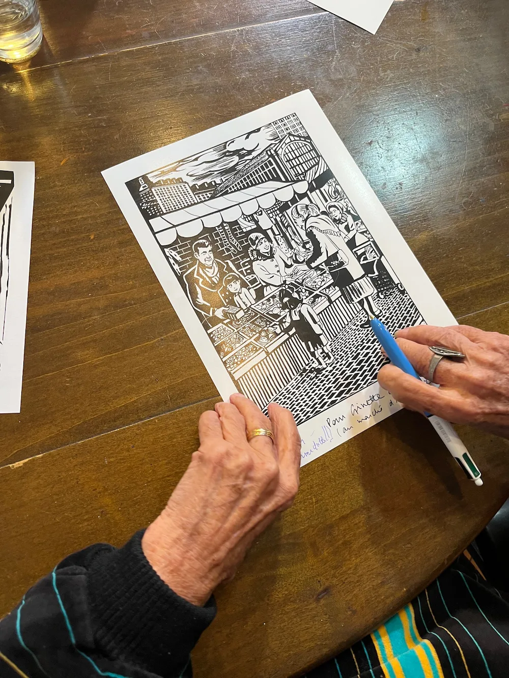 Elle m’a demandé d’y ajouter des dessins pour représenter « l’immontrable », pour fixer des images inexistantes… J’ai tenté d’y répondre par des illustrations d’une simplicité graphique en noir et blanc, à la manière de la gravure sur bois. Le récit évoque non seulement la déportation et les souffrances mais aussi les poisons toujours présents : le racisme , l’antisémitisme , le négationnisme, l’intolérance… Il ne s’agit pas d’une leçon d’histoire figée mais d’une réflexion contre la haine et son mécanisme. La mémoire n’appartient pas au passé, elle engage notre présent et notre avenir.